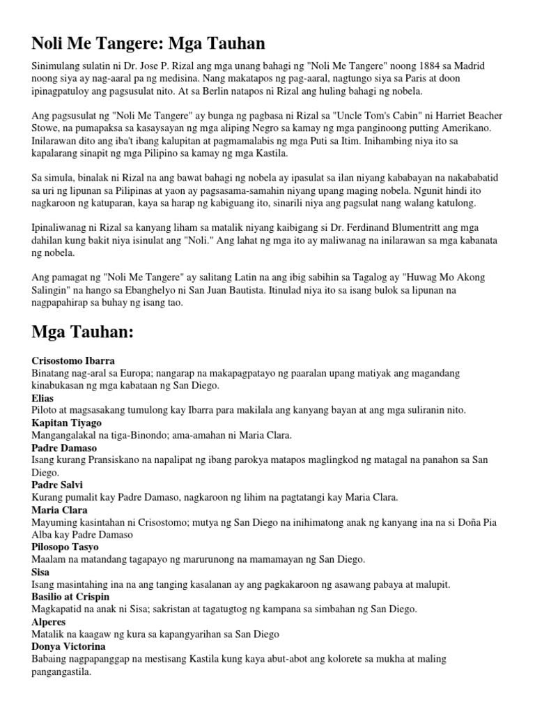 Noli Me Tangere Tauhan At Mga Katangian Ng Bawat Isa