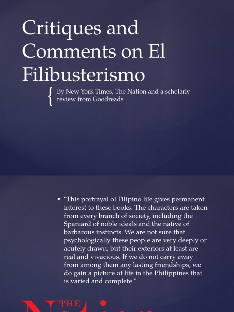 Critiques And Comments On El Filibusterismo
