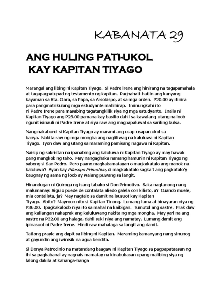 Kabanata 29 Ang Pagpanaw Ni Kapitan Tiyago By Pauline Aguila