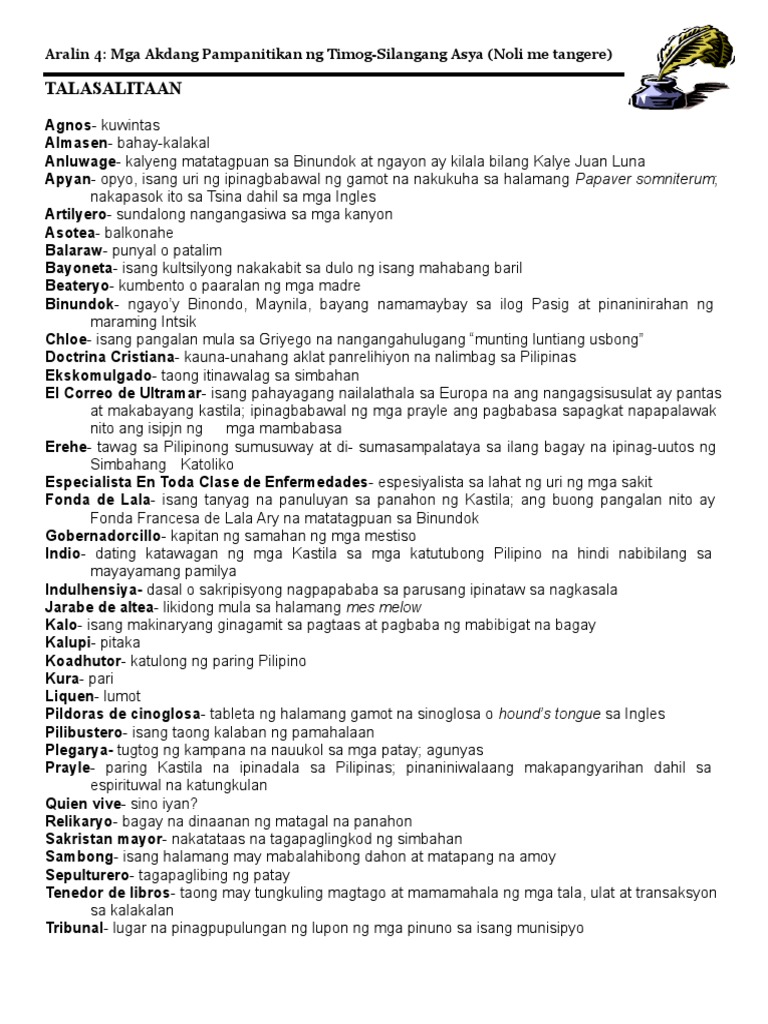 Si Kapitan Tiyago 7. Talasalitaan Kabanata 44. Noli Me Tangere.