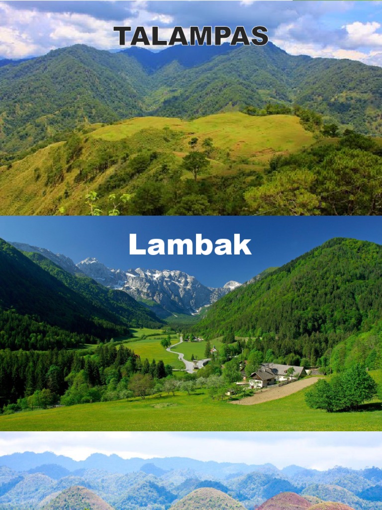 Maaaring itong taniman ng mga palaymaisat gulay. Ang ilog o river ay. 14112018 ANYONG LUPA Narito ang ibat ibang uri ng mga Anyong Lupa kabilang na ang Kapatagan Bundok Bulubundukin Bulkan Burol Lambak Talampas at Tangway.