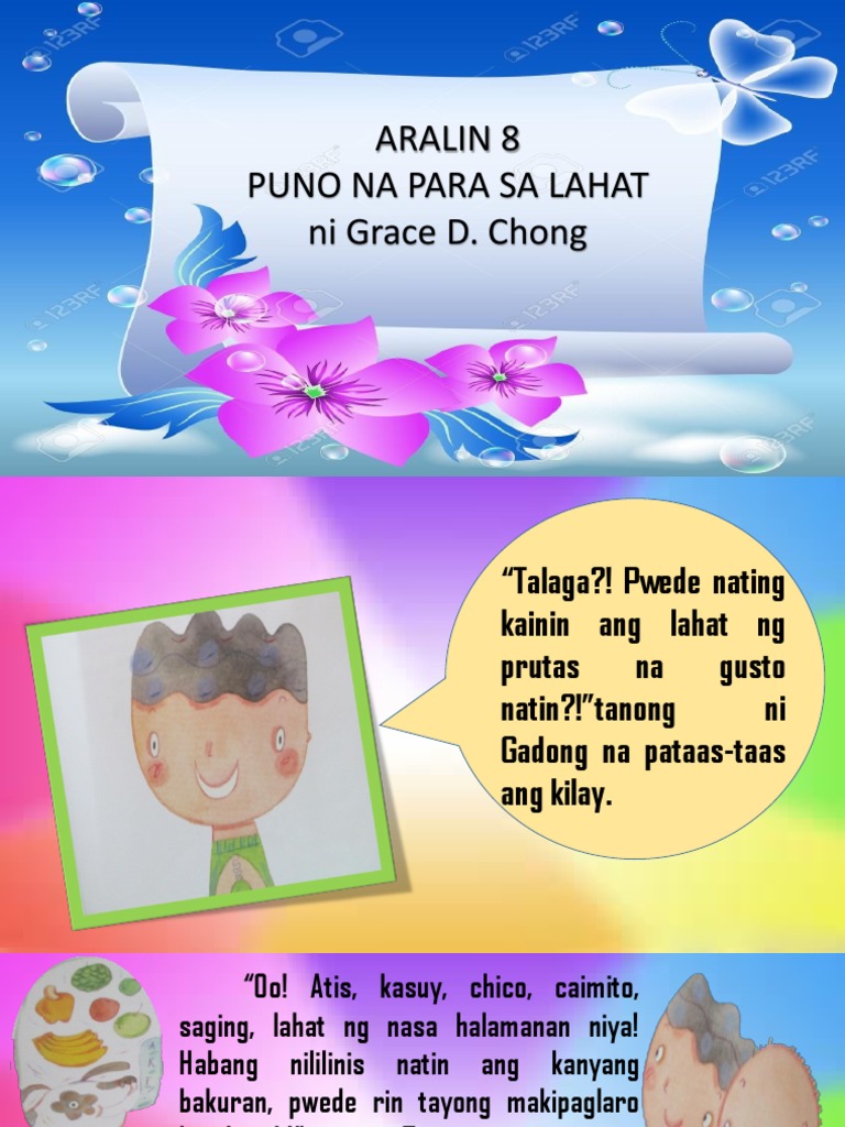 CathyReads Book 8 of 30 Puno Para Sa Lahat Seeing the seedlings we planted previously at Sapang Anginan last July 2014 was coincidental. Laro agad ang naisip ng puno. Walang kahit na anong natira sa kanya walang makain at puno pa ng utang kung kaya ay napag-isip niyang magbalik sa kanyang ama.