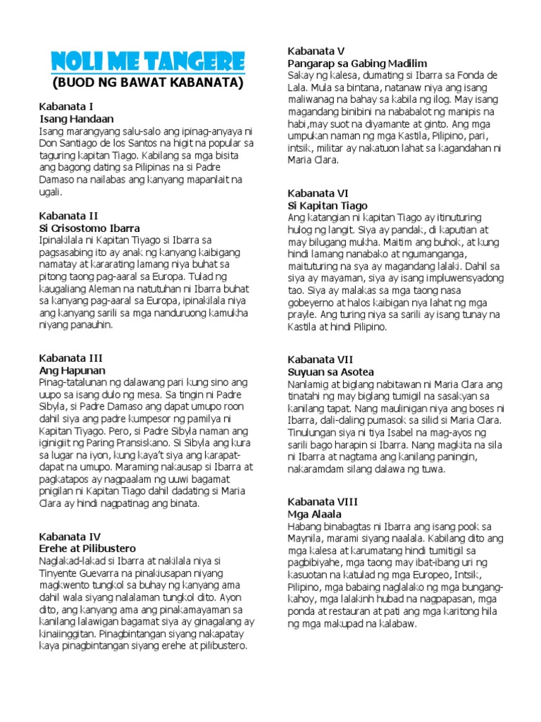 About Press Copyright Contact us Creators Advertise Developers Terms Privacy Policy. Noli Me Tangere. 30122018 Kung hanap mo naman ay ang mga buod ng bawat kabanata at ang mga talasalitaan na ginamit sa nobela basahin ang Noli Me Tangere Buod ng Bawat Kabanata.