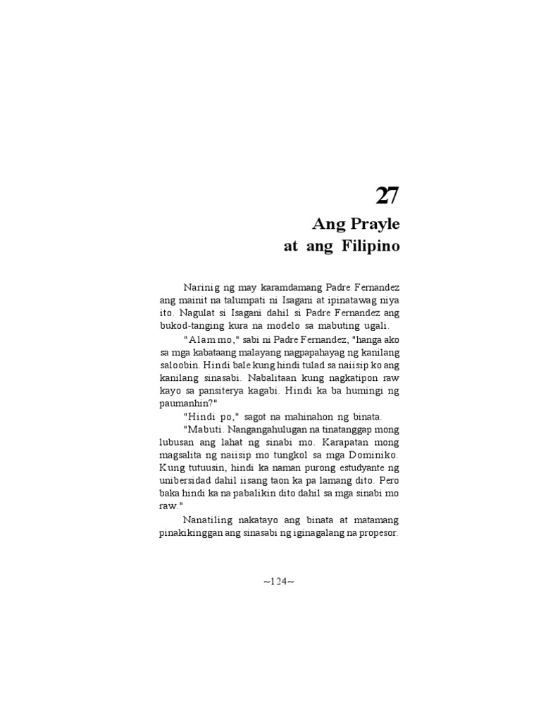 Itinanong din nito kung kasama ba siya sa hapunan. Pangangalaga na ito dahil ako ang nakapangyari ng pinakamataas Nagsuba 7. Kabanata 27 Ang Prayle at ang Estudyante Kabanata 28 Pagkatakot.