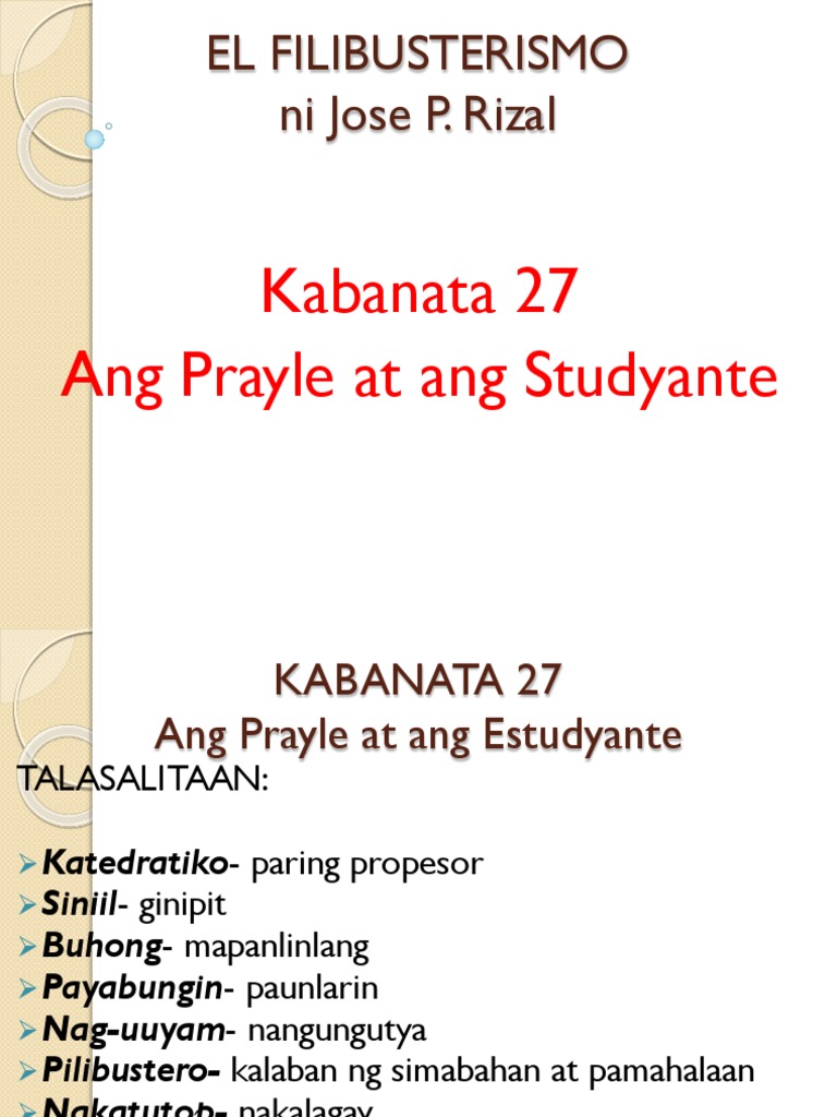 Kabanatang 1-39 Learn with flashcards games and more for free. 3 question Kabanata 27 talasalitaan el filibusterismo. Ipinatawag ng isang katedratikong si Padre Fernandez si Isagani.