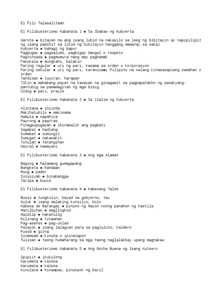 Talasalitaan sa el filibusterismo lahat ng kabanata. SI SIMOUN TALASALITAAN Yabag - ingay na likha ng. Marami sa mga nanood ng palabas ay hindi nasiyahan dahil sa hindi mawaring kahulugan ng wikang Pranses. Pagkatapos ng labing-tatlong taon ay muling nakita ni Basilio ang misteryosong lalaki na tumulong sa paglilibing sa kanyang inang si Sisa.