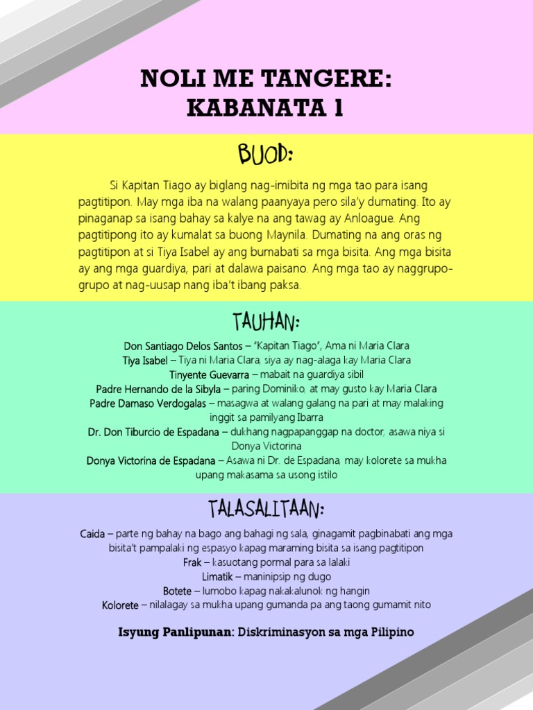 Noli Me Tangere Buod Ng Bawat Kabanata 1 64 With Talasalitaan